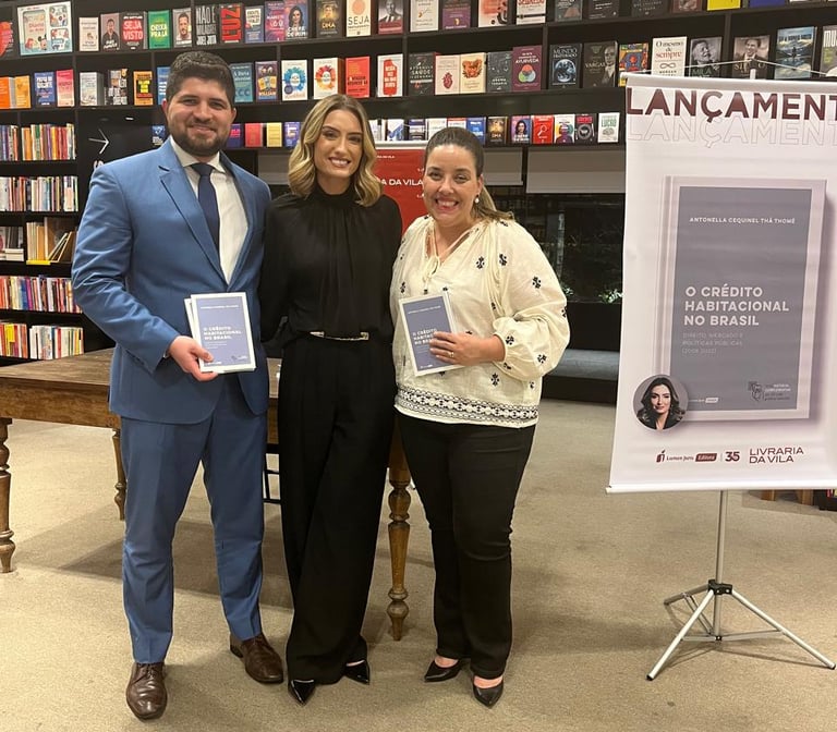 Presença no lançamento do livro "O Crédito Habitacional no Brasil: Direito, Mercado e Políticas Públicas (2008-2022)" da conterrânea de alma mater Antonella Cequinel Thá Thomé, na Livraria da Villa (Pátio Batel), ao lado da advogada corporativista e Gerente Jurídica Patricia Dittrich.